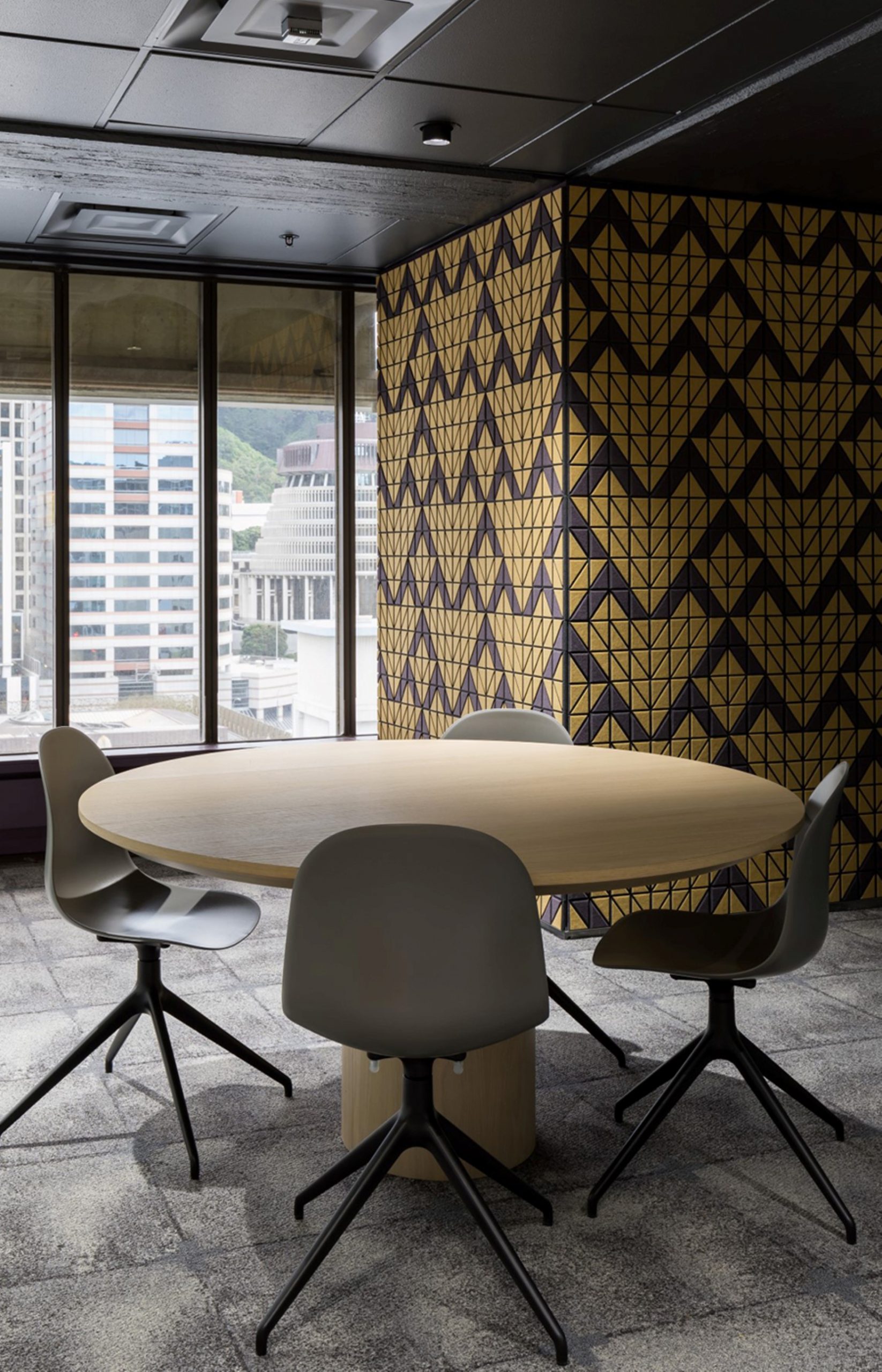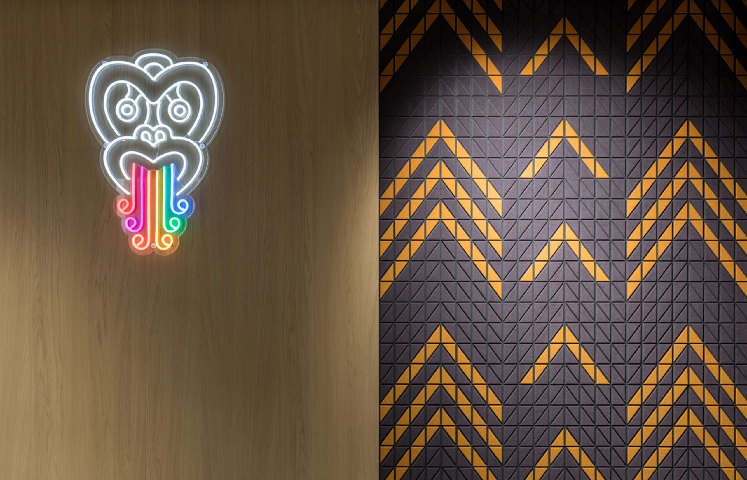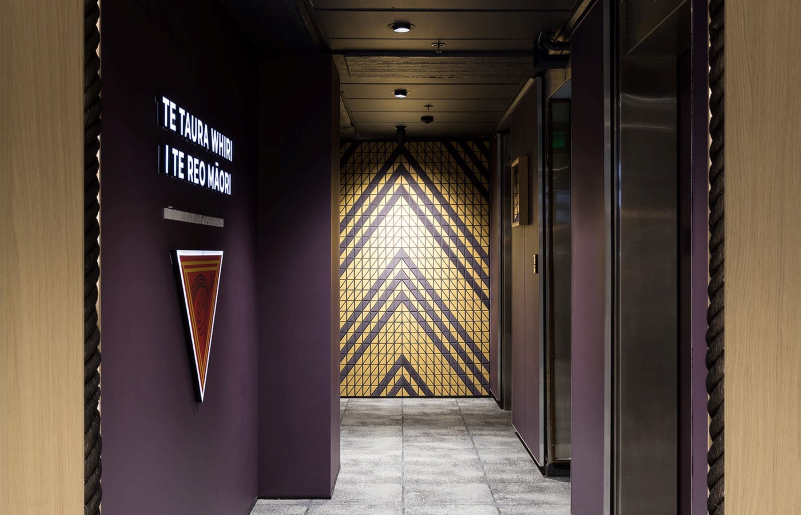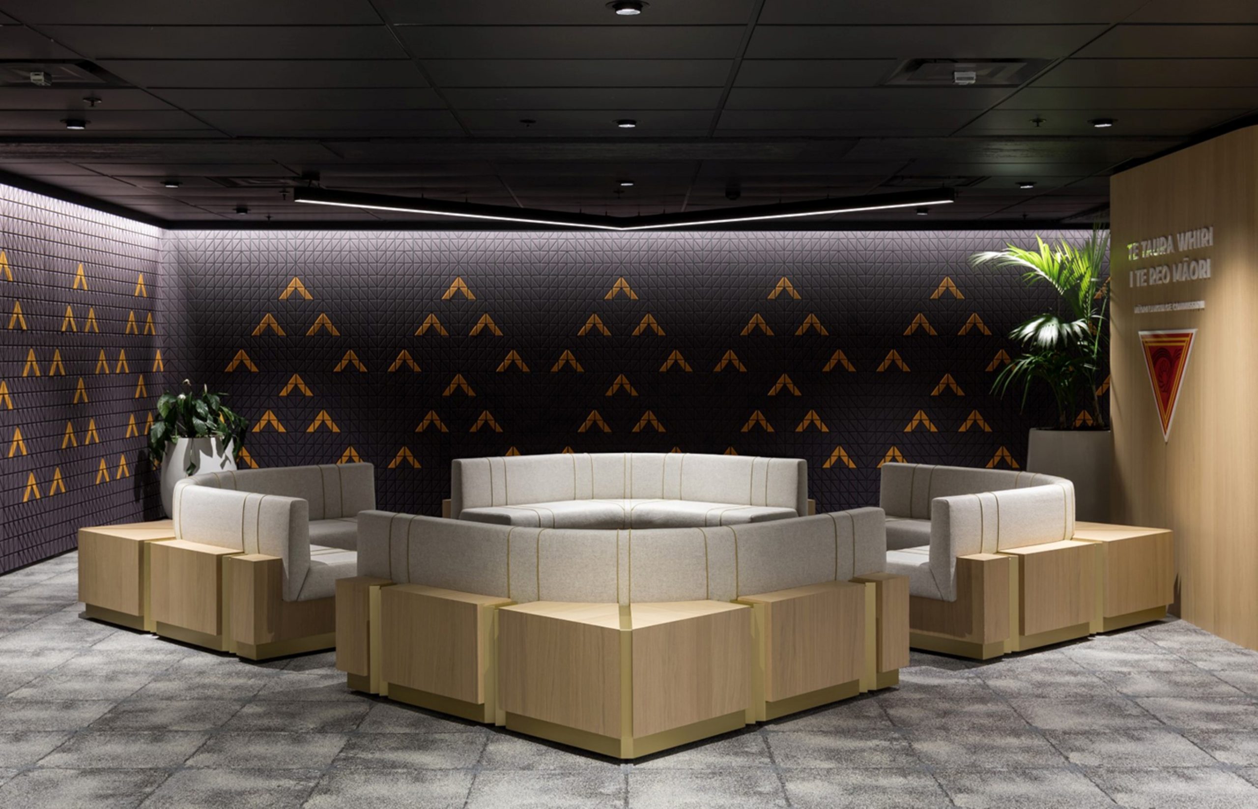Te Taura Whiri I Te Reo Māori approached RCG to design their new whare. We created an environment to ‘echo’ the language, which was focused around the structural and adorning qualities of Tukutuku panels. The carpet acts as a framework to inform hui arrangements, while the walls are dressed in custom acoustic panels that bring brand expressions to life.