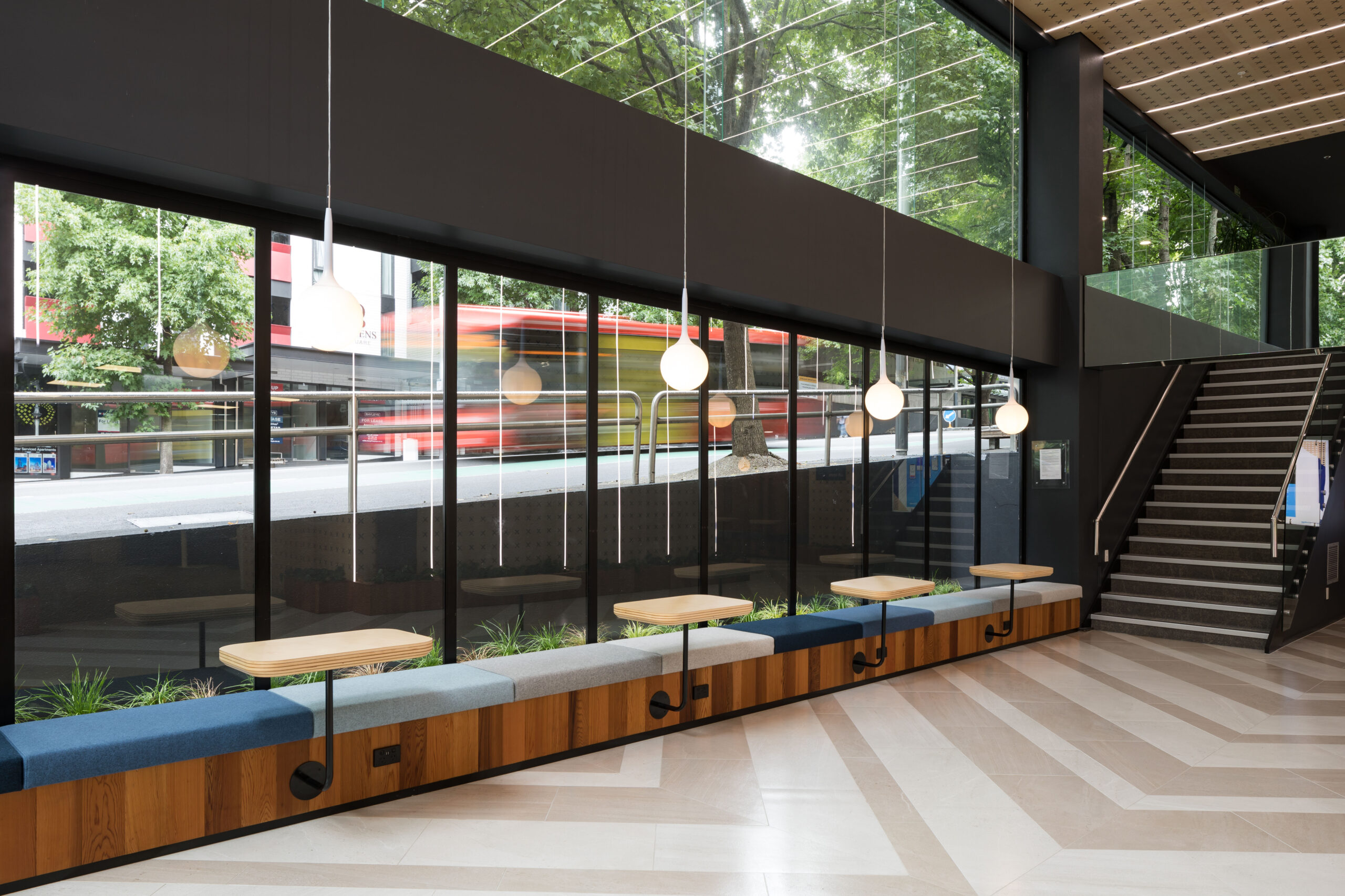 The main intention behind the concept at 345 Queen Street was to create a stronger sense of place for students, visitors and staff. It is one of the first places that new International students will have exposure to; it presents itself as a great opportunity to embed strong Te Ao Māori narratives, whilst also reflecting the varied journeys of the users. The space focuses on themes of navigation, connection and protection; and explores the threshold of a bi-cultural dialogue.